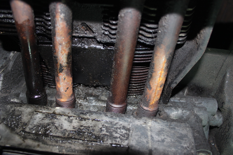 I spent some time over the last couple days crawling around underneath the bus (well more like scooting along the dirty garage floor). I mentioned how I heard concussive noises after running the engine for 10 – 15 minutes, and one theory is that my engine timing is off, causing the spark plugs to ignite too much gas and put too much pressure on the pushrods ( I know, I’m learning big, mechanic sounding words like ‘pushrods’ and ‘oil’ and ‘gasket’… so exciting). This might be the reason why the driver’s side push rod tubes have evidence of a significant oil leak. The good news is that they sell replacement tubes and rods that can be installed w/o taking out the engine. I can’t wait to get all up in that greasy mess! While I’m at it, I’ll replace the oil and drain gaskets that are clearly not sealed right now.