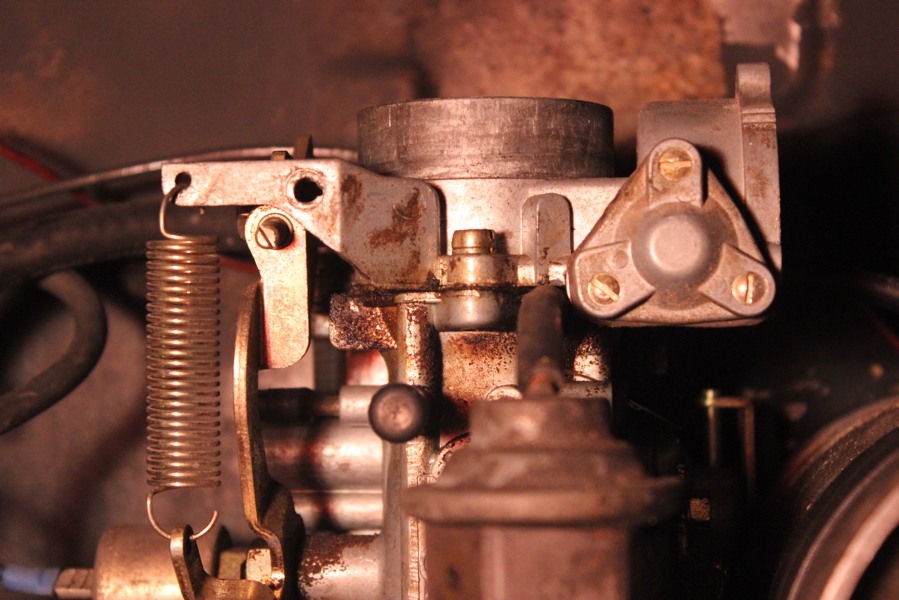 Engine is still running poorly. I’ve spent a few nights this week trying to get the engine to idle properly and not overheat – I’m not quite there yet. This is what is happening: Engine starts quickly (better than last week, but I still have to pump the gas pedal 2 – 3 times before turning the key). Engine fires up – if its starting cold, runs for couple minutes until warm – if its already warm, runs for about 5 seconds before idle slows and it dies… Unless I goose the gas a bit. It varies how many times I have to lightly rev the engine, but eventually it settles and will idle somewhat roughly. If I put it in gear and go anywhere, the engine will start to die as soon as I press in the clutch and come to a stop – unless I can get stopped quick enough and goose the pedal a few times. I’m getting pretty good at keeping the engine going, and when it does die, it will start right back up. It also seems to be running fairly hot. Bottom line is – I got me some engine problems, and they needs a fixin.