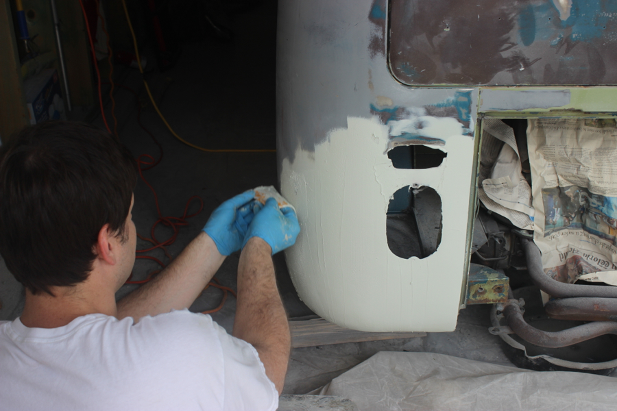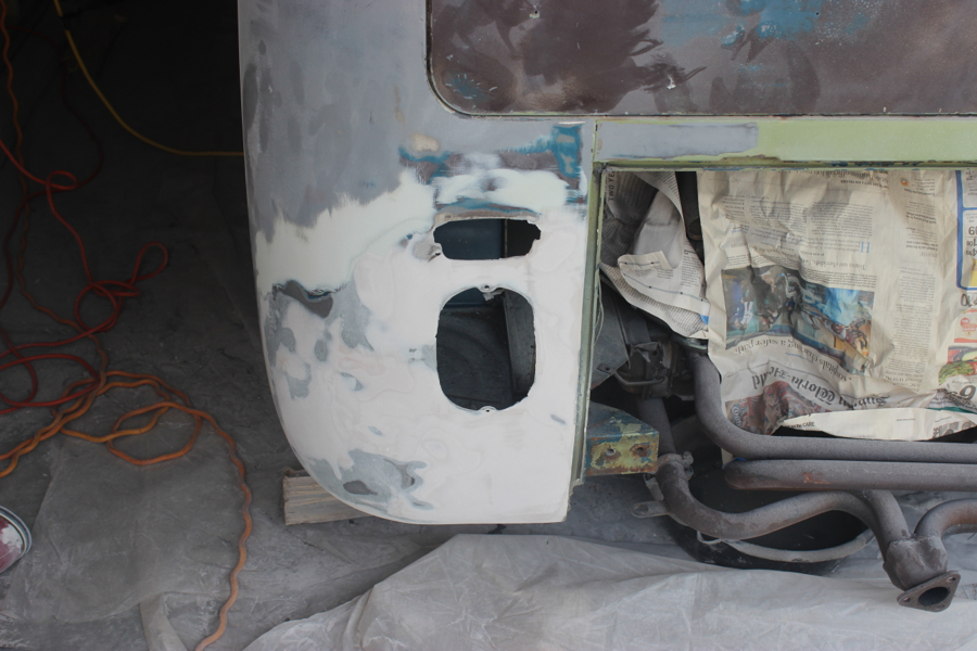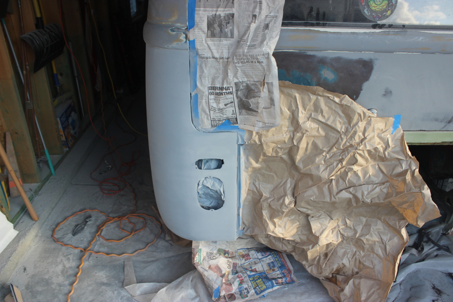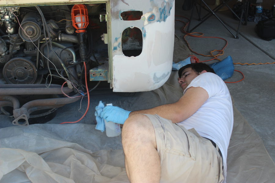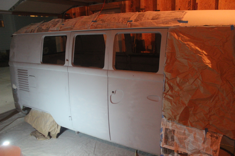 I took about a week to clean up and beautify the bus. I painted and assembled the front and rear bumpers. Earlier, I bought the front bumper accessories and entire rear bumper assembly from Wolfsburg West, and was pretty happy with how they came together. It took some creative ratcheting with a strap to get the things to fit properly onto the bus, but I think they look really good.