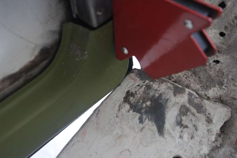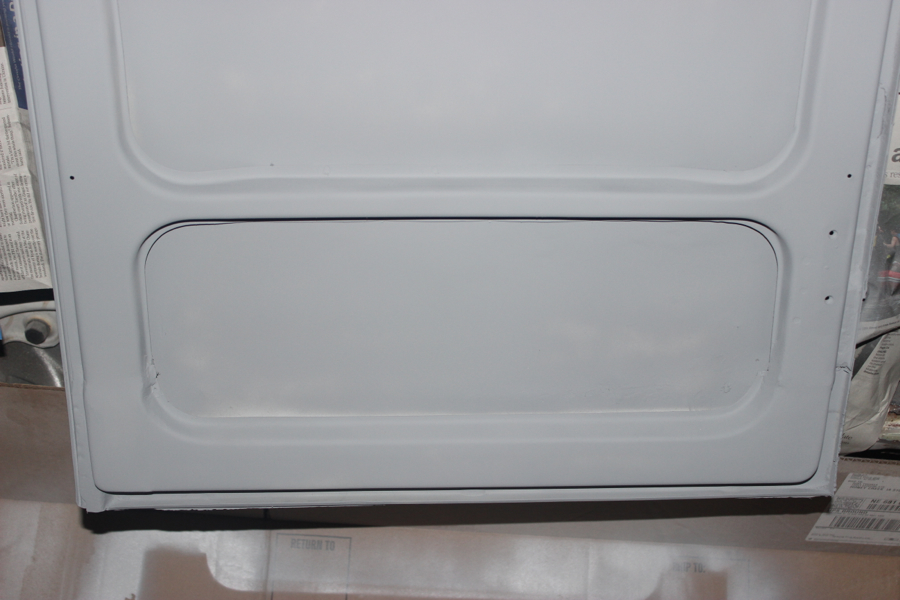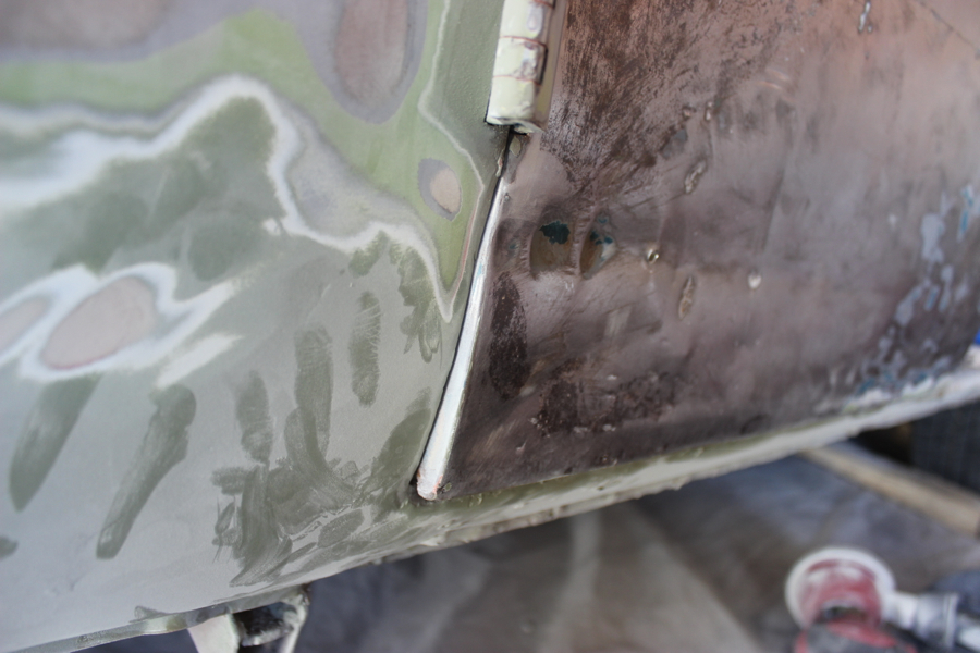 Then added a layer or two of finishing putty to even everything out, and spray bombed w/ grey Rustoleum Automotive Primer. It looks ok in the pic, but will look a lot better when I do the whole side evenly.