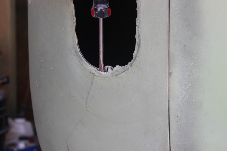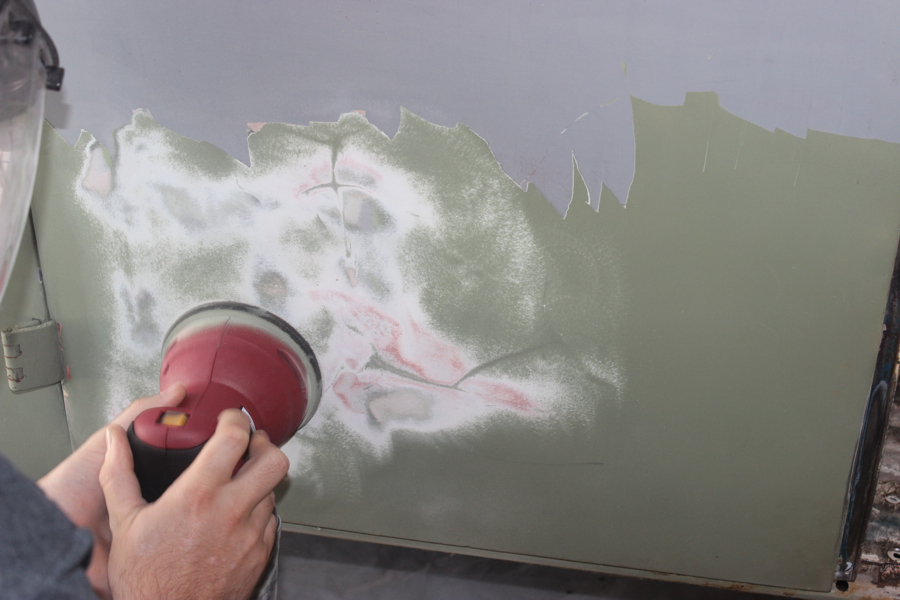 I started filling the deeper gouge marks and scratches with fiberglass resin jelly – I also use this to fill some of the smaller holes around the bus.