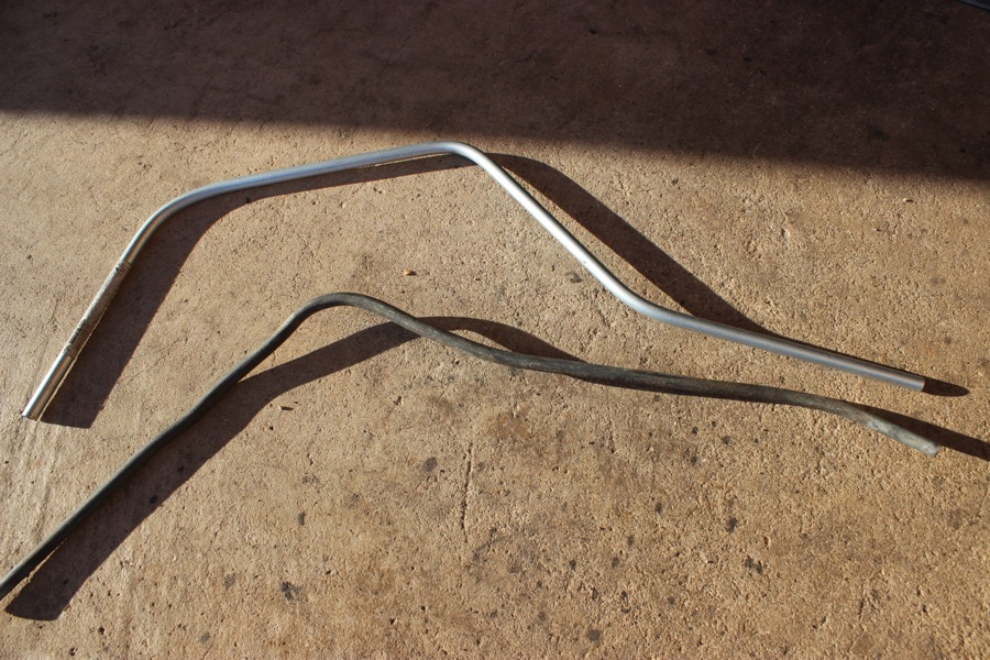 This is my new 4-1/2″ angle grinder! I bought this thing from Harbor Freight to help remove the welded front bumper brackets, and strip the old paint & rust from various parts of the bus. Bottom line is that this tool is a beast – its not that big, but it spins at 10K RPM – I’m definitely not messing around! I tried grinding down, and then cutting into the bracket weld. Unfortunately, with all of the sparks flying and the loud screeching of the grinding wheel, I wasn’t willing to keep it up for very long – so far, the apartment mgmt has been very lenient with my tinkering, and I don’t want to mess that up.