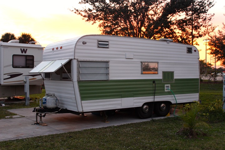 Earlier in the week, a big cold front came through, and the weather gods decided it would be a good idea to test my feeble waterproofing attempts. It rained hard for over 24 hours. A few hours in, I checked the weather – it said weather advisory – yep, it said flood watch – yep, it said lots of rain – yep, it said “Heaviest accumulations north of the I-4 corridor – yep, I looked outside – yep, we were in for a monsoon! My silicon-caulking job held at first, but eventually water started seeping in around the side window and the top of the front windows. The only other leak we detected was from part of the roof vent. Noelle rigged a nice little water catcher for that – she’s so smart!
